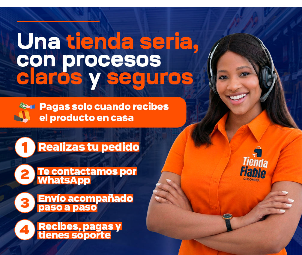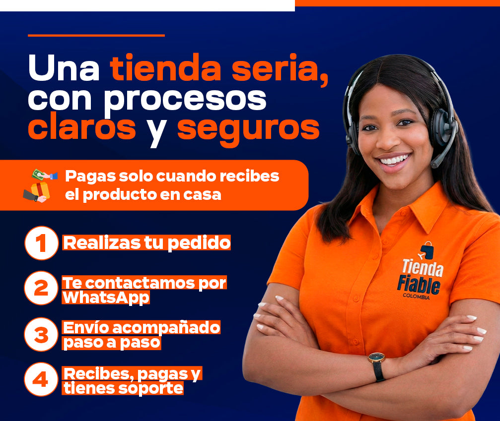 En Tienda Fiable, trabajamos para traer a Colombia sueños, innovación y experiencias reales, con más de 6 años de dedicación al comercio electrónico y más de 200.000 entregas exitosas en todo el país. Nos caracteriza un servicio cercano, confiable y pensado para que vivas una experiencia de compra transparente y sin complicaciones. Nuestras políticas claras te brindan la tranquilidad de contar con devoluciones y reembolsos fáciles cuando los necesites. Gracias a una trayectoria que respalda la autenticidad y calidad de cada producto, nos llena de orgullo ser ese puente que te conecta con nuevas posibilidades. Gracias por confiar en nosotros y permitirnos acompañarte en tu día a día.